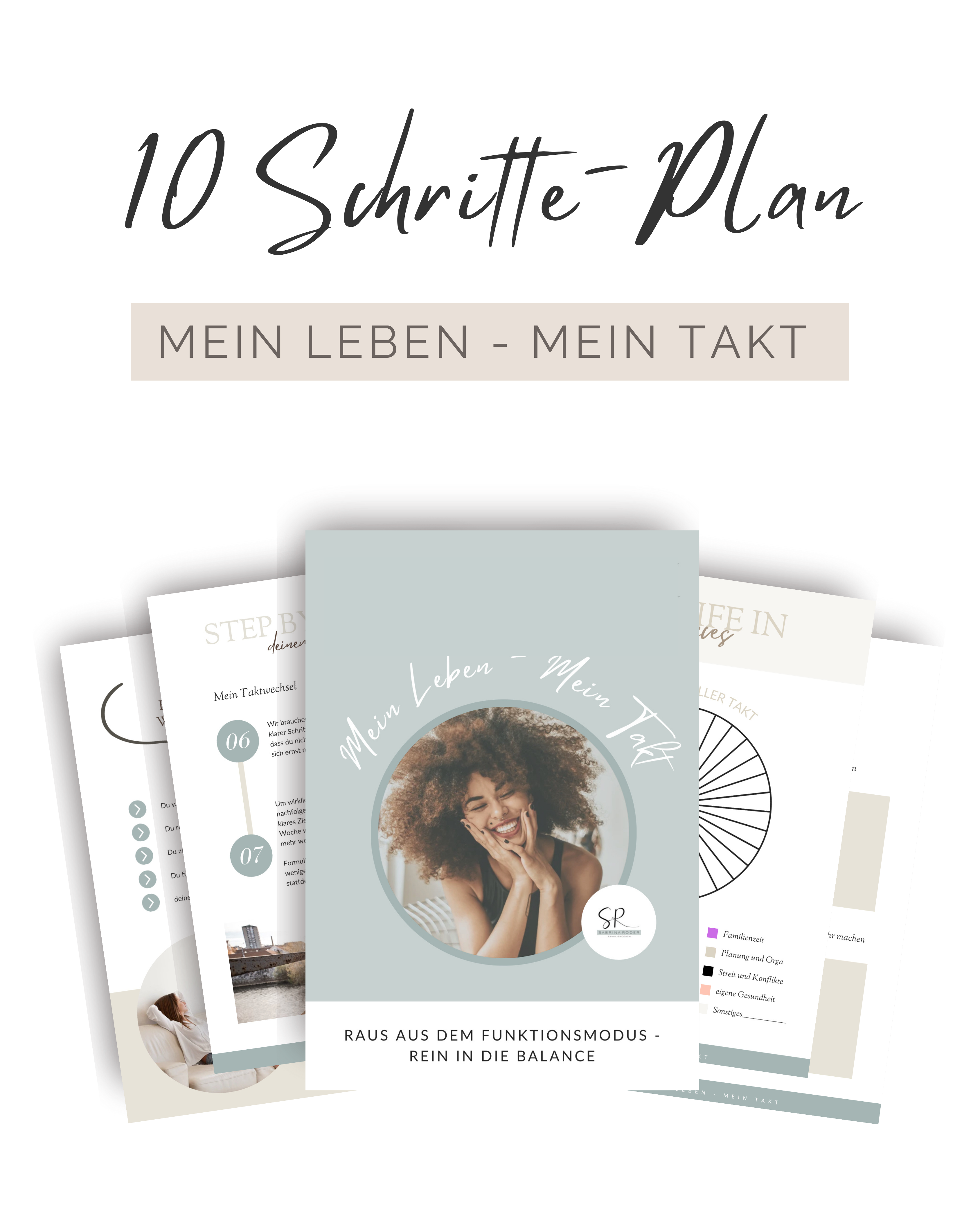 Es ist so schön, dass dir dein Leben, dein Wohlbefinden und dein Mama-Sein so wichtig ist. Mit dem 10-Schritte-Plan „Mein Leben, mein Takt“ hast du ein Werkzeug in der Hand, das dich dabei unterstützen darf, wieder mehr Leichtigkeit, Balance und Freude in euren Alltag zu bringen.
